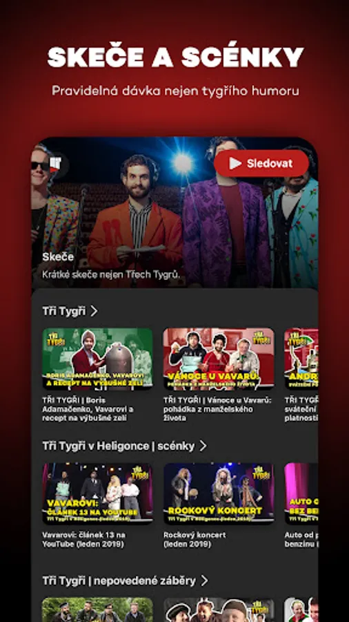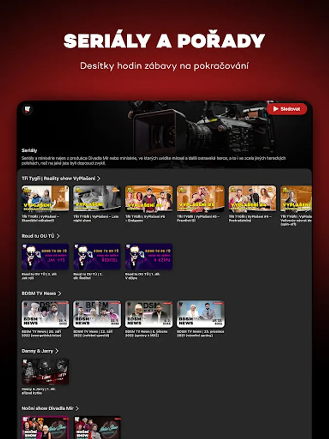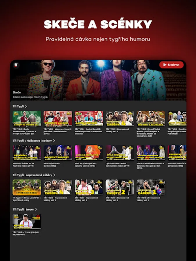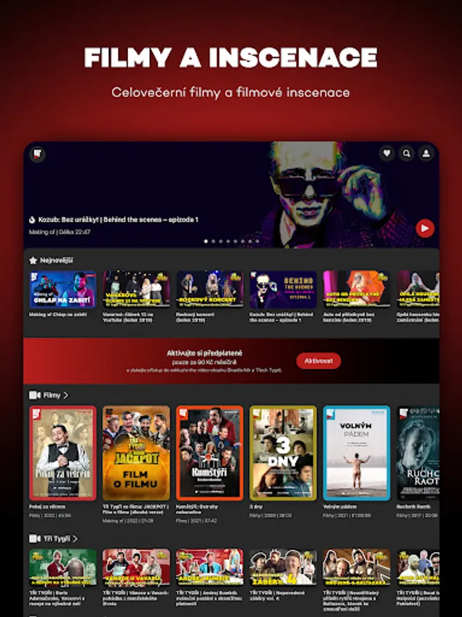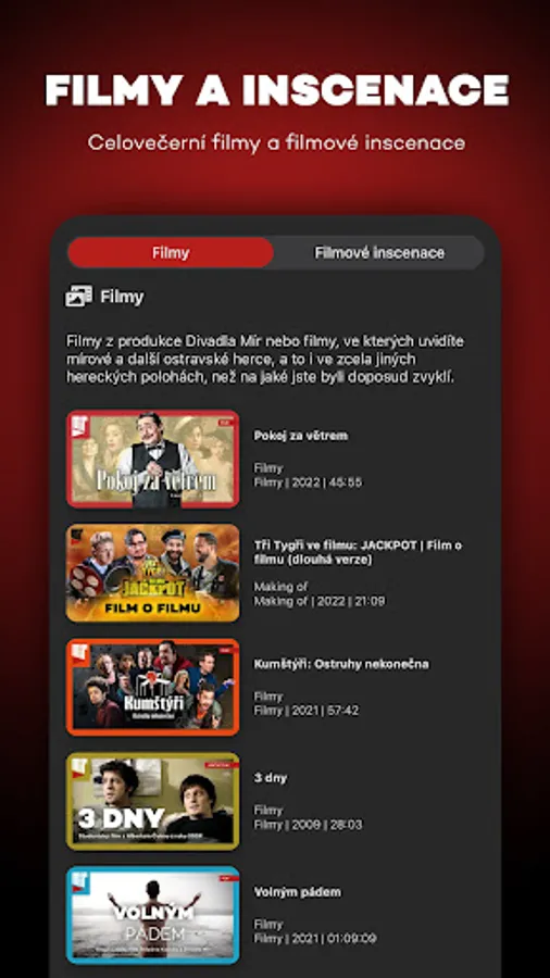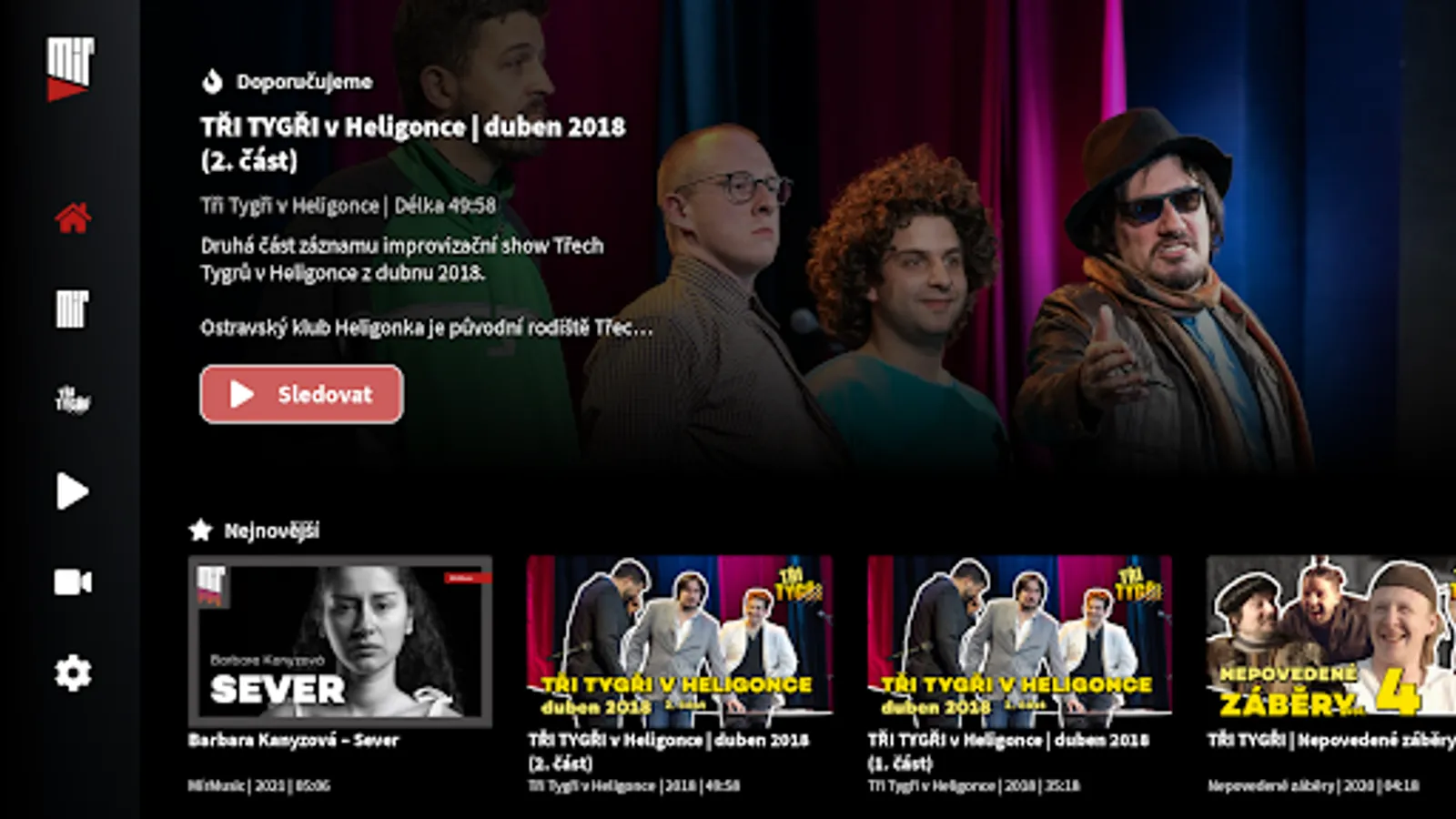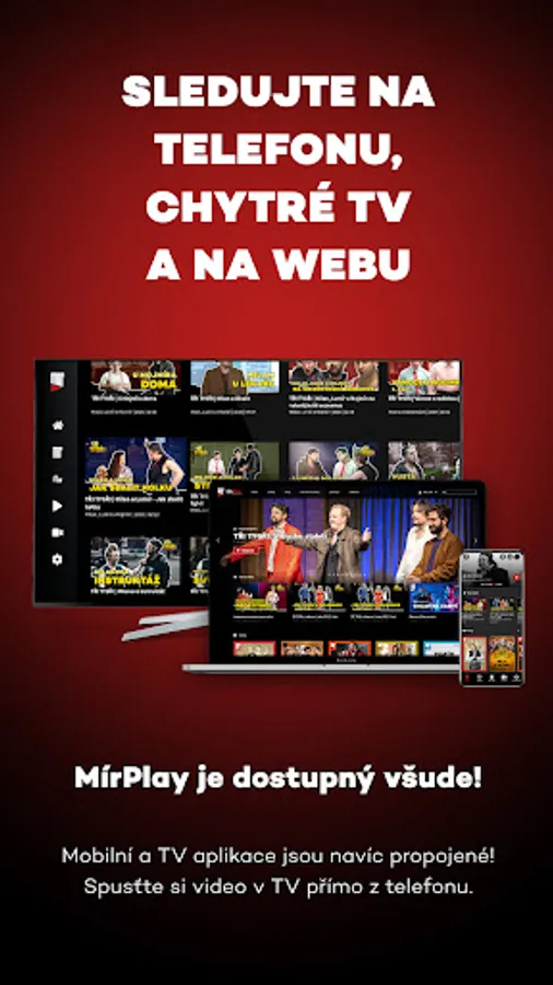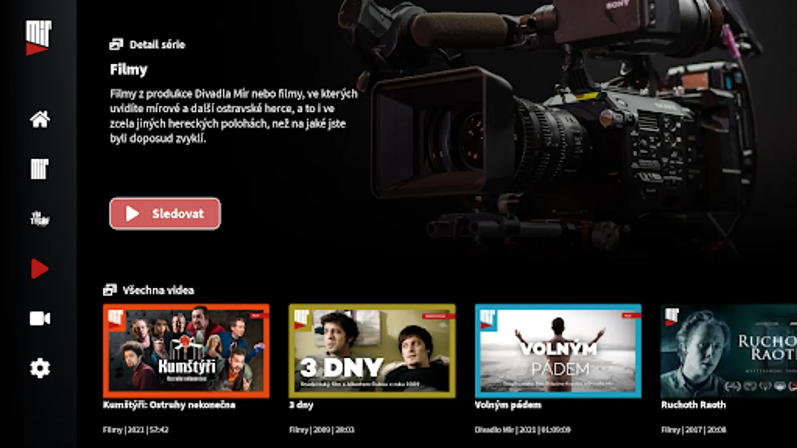 The video library of the Mír a Třech Tygrů Theater is now also available on your smart devices! In the official MírPlay application you will find dozens of hours of entertainment from Mír productions and with your favorite actors such as Štěpán Kozub, Albert Čuba, Robin Ferro, Vladimír Polák and others.