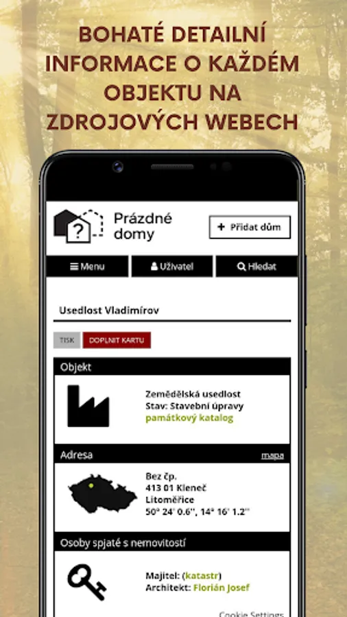 A unique application for those of you who like to explore the history and soul of interesting places scattered across the landscape of our beautiful country. The goal is to create a comprehensive and rich online source of inspiration for your walks in nature.