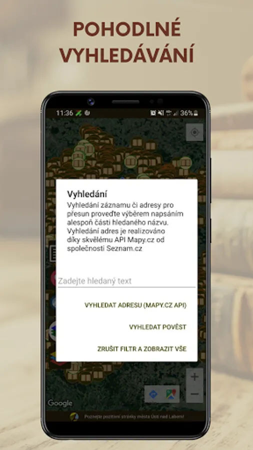 - Possibility to choose map data (Google, Mapy.cz, OpenStreetMaps, ČÚZK ...)