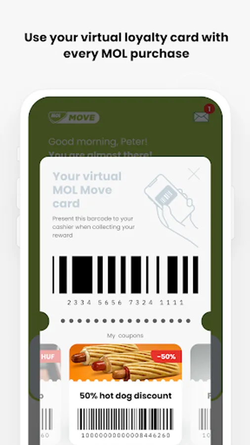 You receive points for almost anything you buy with the digital MOL Move card. You can access your digital MOL Move card in the most convenient way: choose the ‘Your card’ option in the app.