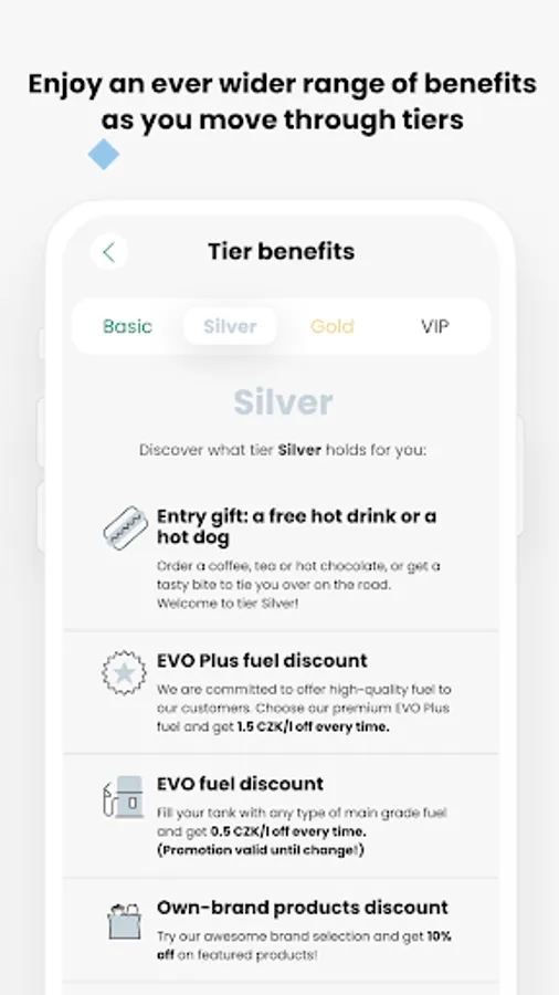 As you earn more points, you can move through each tier and experience a different range of exciting benefits. You will start your journey in tier Basic, after that it’s up to you how quick you reach the next Silver, Gold or VIP tiers. You can check your point balance and your current progress any time on your home screen.