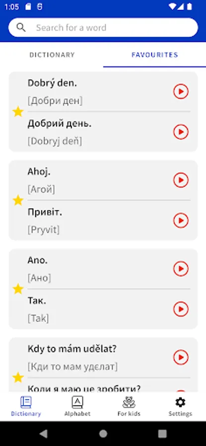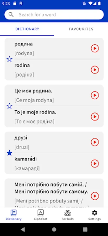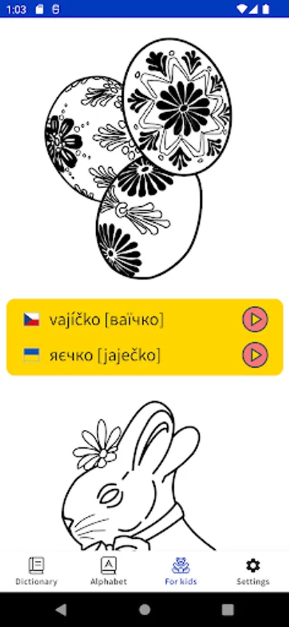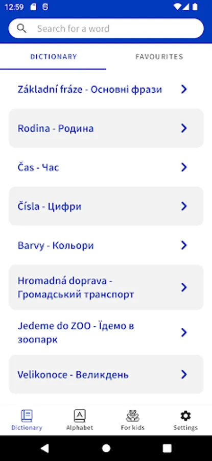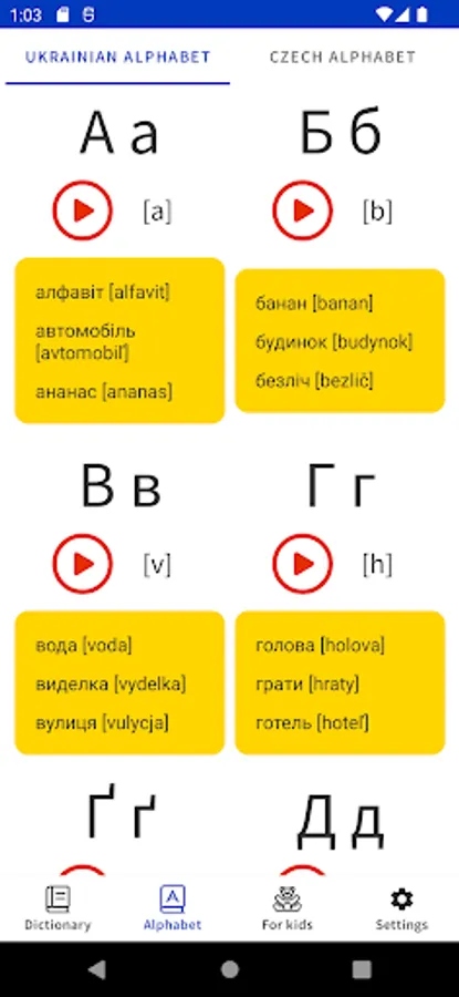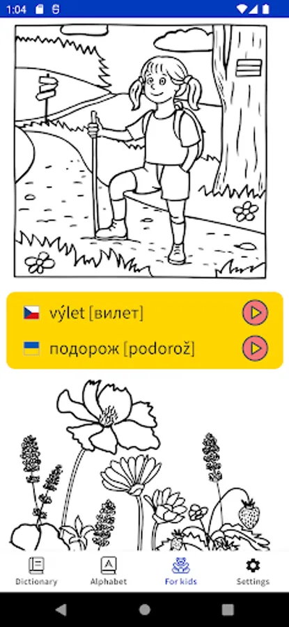 The application works even offline. You will find more than 1,000 communication phrases in both Czech and Ukrainian sorted according to real-life situations (doctor, school, the job center…). The children’s section contains vocabulary followed-up by pictures which makes learning fun. Try and learn all the characters of Ukrainian Cyrillic - example words will help you.