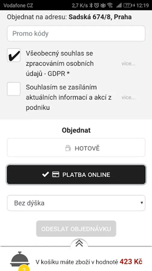 Order pizza from your phone ... easily and quickly. In our application of the company Pizza Adria Praha you will find a complete delivery menu. You can clearly choose the place of delivery in Prague. Take the opportunity to improve your favorite food and choose ingredients or supplements in addition to each meal. You can then pay for your order online with a payment card or via electronic banking.