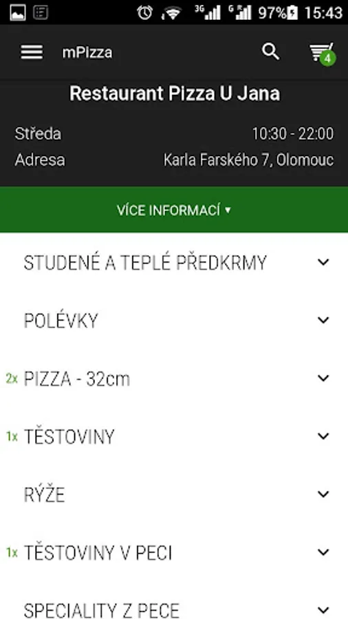 In 2000 Olomouc - Hodolany opened Pizza Restaurant U Jana. Opening hours are from 11.00 to 22.30.