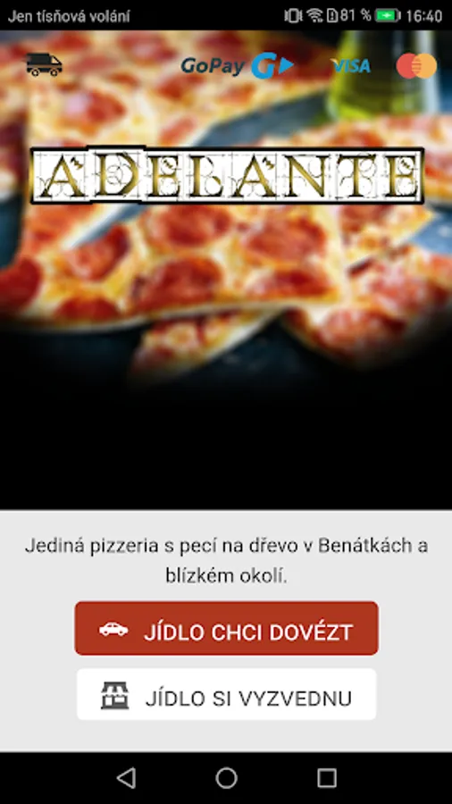 Order pizza from your phone .. simply and quickly. In our application Pizzeria Adelante wrecker for a complete menu. Clearly, you can choose the location for distribution Benatky a wide area.