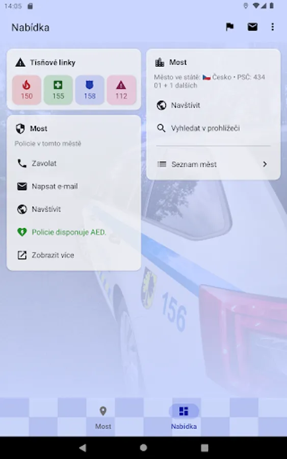 Our application can find the city or municipal police using your location. All you have to do is open the application and hold down the call button to establish a connection. This way, you no longer have to deal with presets on line 156 when it comes to seconds.