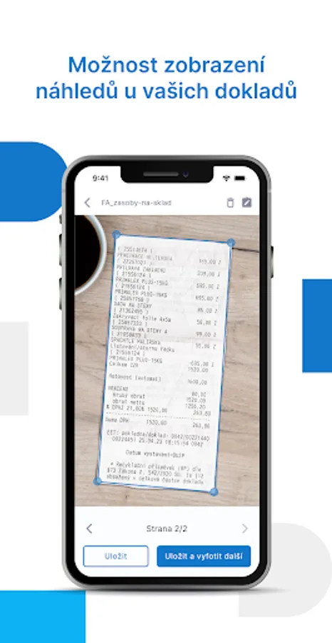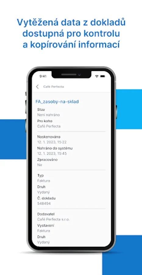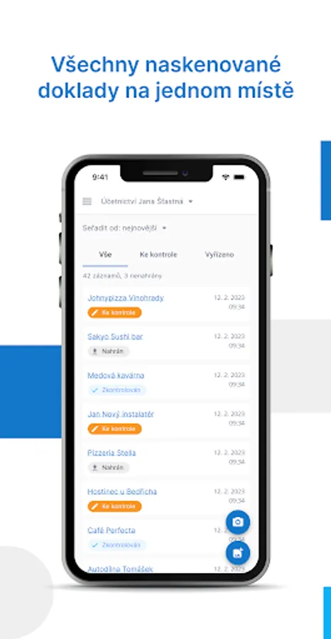 The mobile application is part of the Dokladovna system, which helps entrepreneurs and accountants with the digitization of tax documents, their sharing, data extraction from the document image, preparation for accounting, checking the correctness and completeness of data, as well as transferring them to the accounting software, and at the same time provides an overview of the processed documents.