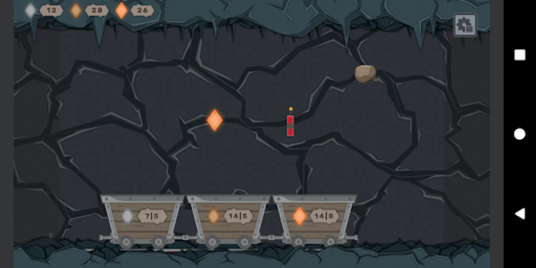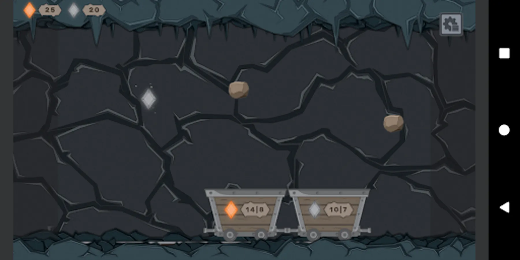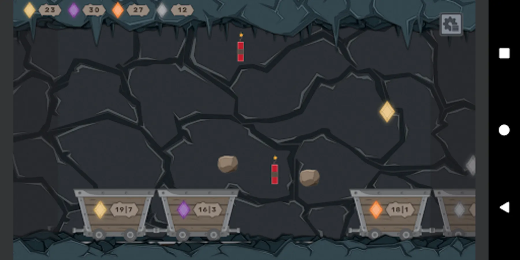 Two numbers on each wagon indicate: (1) how many right gems you have to collect | (2) how many bad gems you can collect