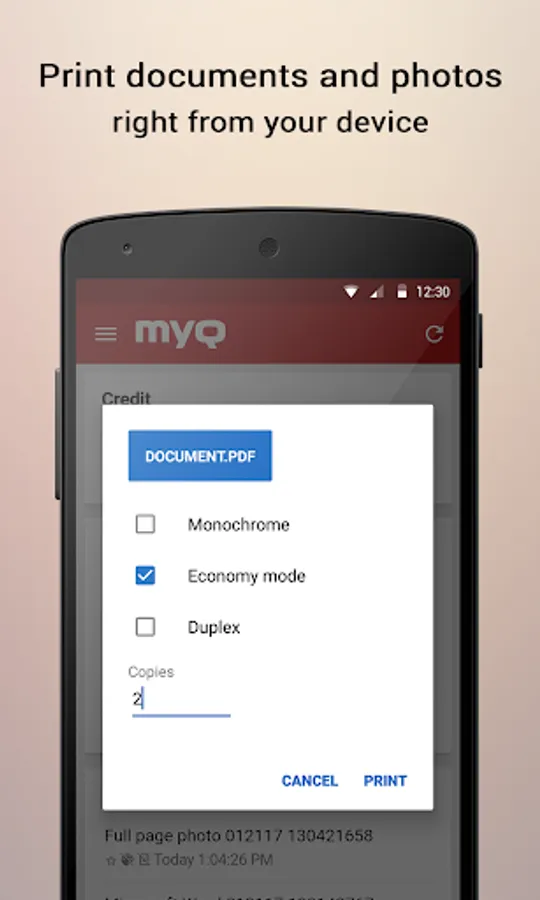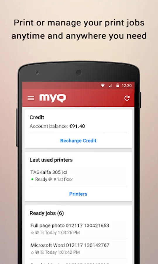 Welcome to the Android app for MyQ Solution. This MyQ Mobile Printing app will assist you anytime and anywhere to manage your print jobs remotely when you’re on the go.