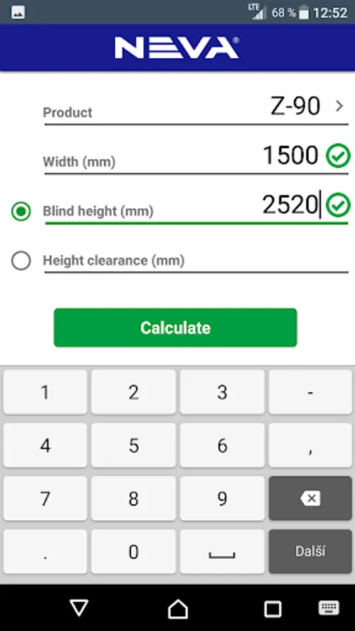 NEVA App is an application that allows you to quickly, simply and reliably calculate important values associated with ordering NEVA external blinds or facilitating their installation.
