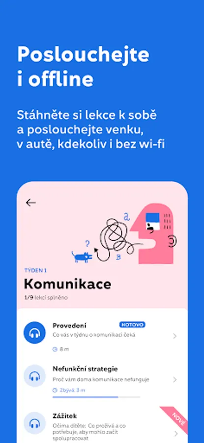 Do you want to listen to Névychova on the playground or on the way to work, but you don't have internet on your phone? Or are you going to the mountains and don't know if you will get a signal there? Does not matter. With one click, you can download all the lessons to your mobile phone and listen to them as audio at any time, even without an Internet connection.