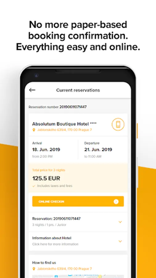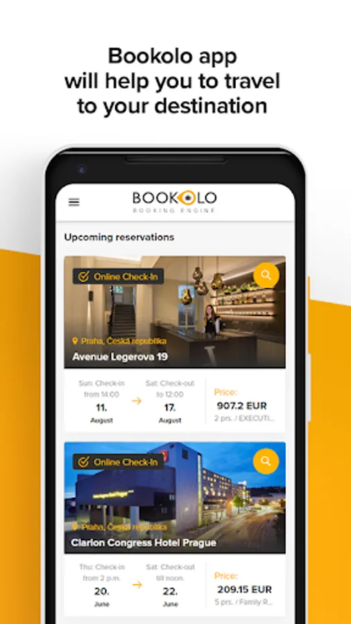 Always keep your reservation close at hand. Bookolo app will help you to travel to your destination, speed up check in at the hotel, allow you to edit or cancel your booking online. No more paper-based booking confirmation. Everything easy and online.