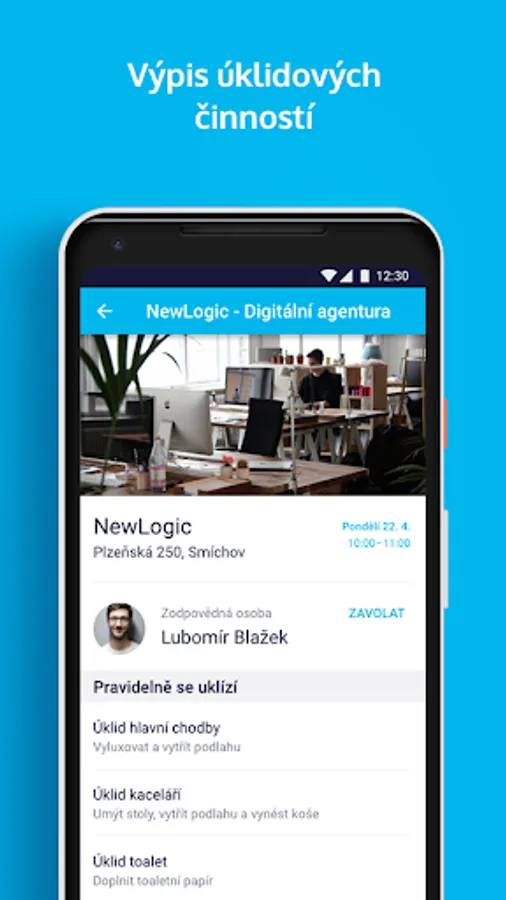 The application provides an overview of cleaning activities kontakntí person checklists provided services with simple communication and the possibility of sending images in real time. The application requires access information and is intended only for our customers.