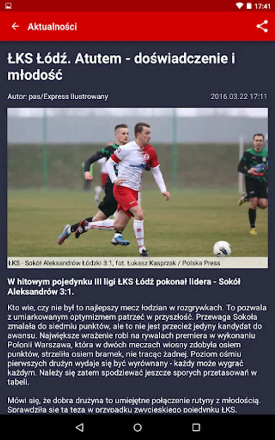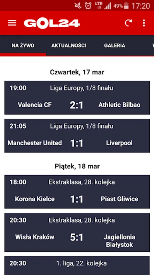 * PREMIUM VERSION - subscribe and enjoy the lack of ads. You will have access to information about Polish and foreign clubs and national teams (schedule, results, news, galleries, videos). Favorite bands can be pinned to the main menu without any restrictions.