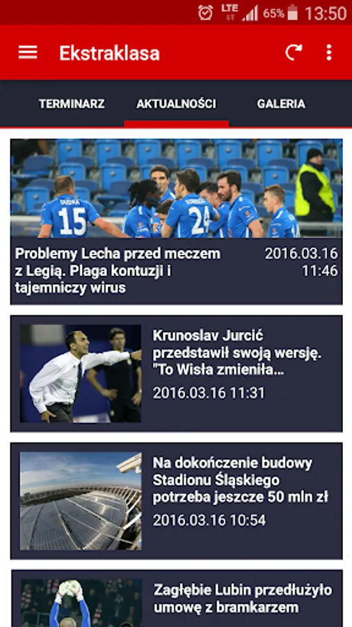 * GALLERIES IN HIGH RESOLUTION - now browsing the photoreportages on the phone is just a pleasure. In our application you will find a lot of match galleries, photos from the stands, training, trivia, compilation and ... pics of the most beautiful fans.