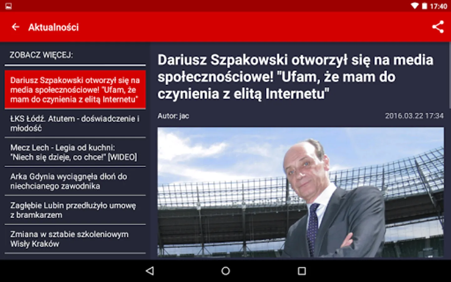 * THE LATEST NEWS - be closer to the most interesting football events. Dozens of football news awaits you on your smartphone every day. In the application you will find news divided into dozens of categories.