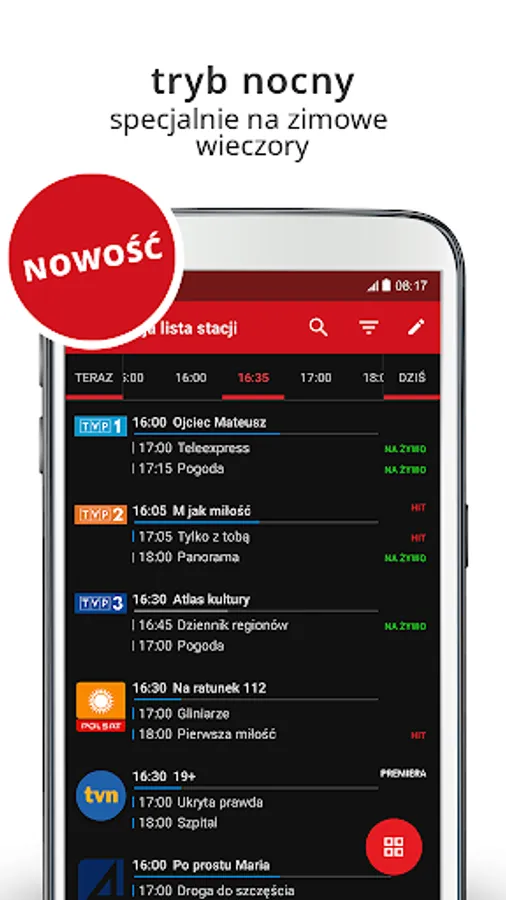 The new version of the application is new functionalities. Equally, our timeline will not be found. We wanted everything to be clear, transparent and clear to you, which we managed thanks to the minimalistic and tasteful design. You can not get lost in it! Can you want something more? Yes - detailed descriptions of programs and photo galleries, which of course we also offer. What's more, the layout of the program in the application Telemagazyn on Android can instantly adapt to your own needs and preferences. Only two clicks are required to change the way the program is displayed.