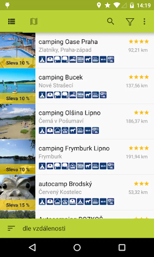Map of campsites in the Czech Republic and Slovakia. Each campsite provides contact details, opening dates and what type of accommodation the campsite offer. For complete information about the campsite you can use a link to his detailed presentation on the server www.CAMP.cz