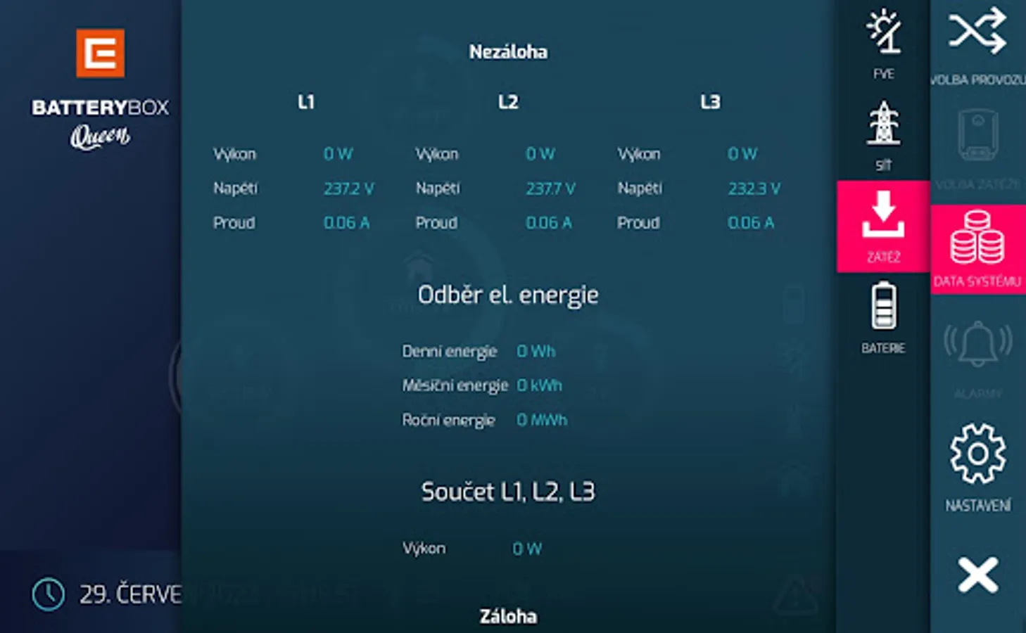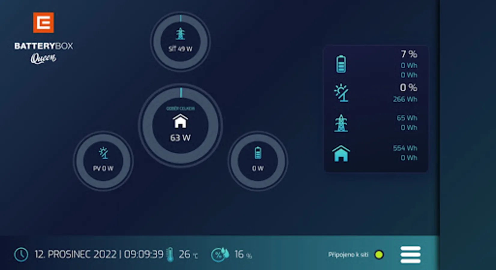 With the application designed for BATTERY BOX 3F Queen hybrid systems, you get a clear tool for displaying current production and distribution data, including its management. The application is designed for tablets.
