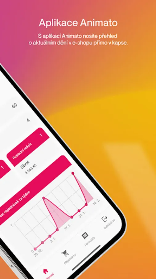 With the Animato application, you will have an overview of current events in the e-shop right in your pocket. You can view, edit and process current orders on your mobile, wherever you are. You can make a note for each of them or contact the client directly. You will not miss requests and questions from submitted forms. You can solve them instantly, for example during lunch. With the Animato application, you can conveniently manage orders, forms and check statistics directly from your mobile phone.