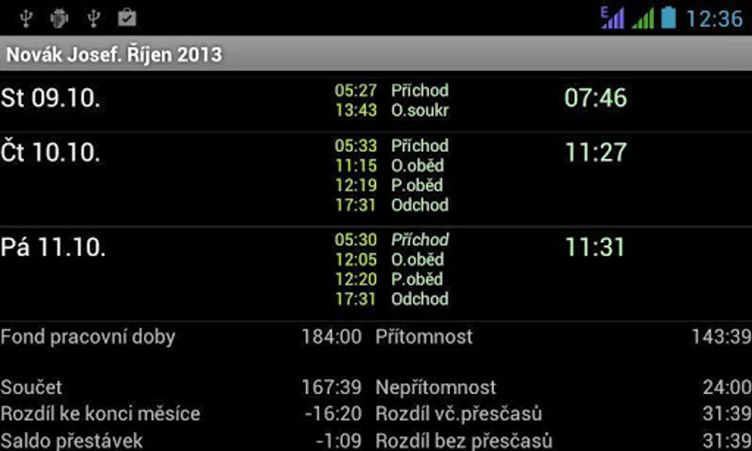 Each employee can through your smartphone look on his time clock. This is a frontend to docházkovému system from OR-CZ. You can download a demo application that presents the appearance of the application.
