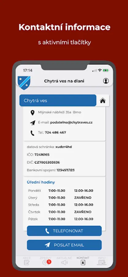 Mobile application for cities and municipalities The municipality in the palm of your hand is a useful tool for residents of cities and municipalities, which allows them to easily access important information and services of the city or municipality. Thanks to this application, residents can quickly and easily get an overview of current events, public events or the opening hours of offices and other services. The app also allows citizens to contact City Hall or other authorities to get answers to their questions or solve problems.