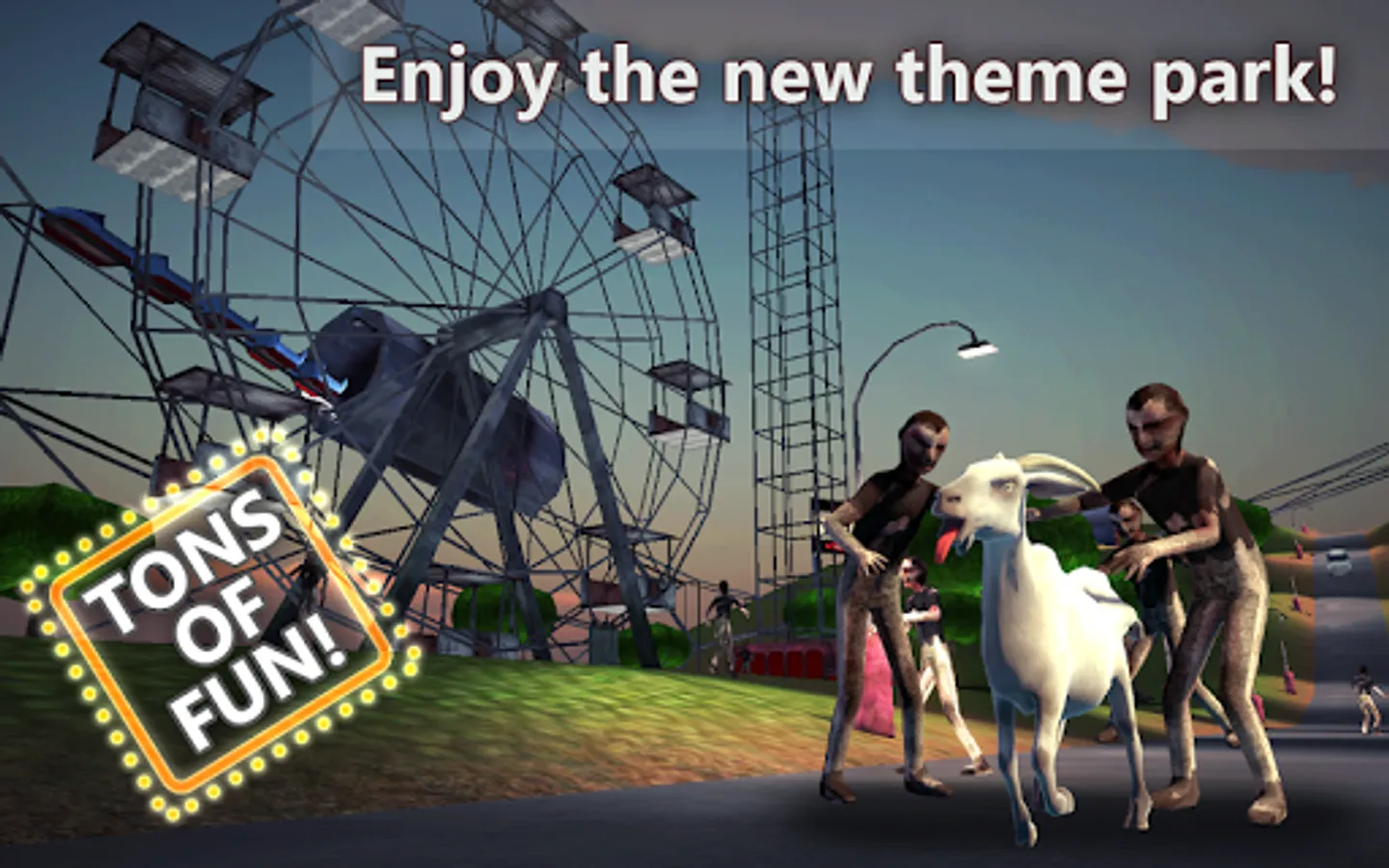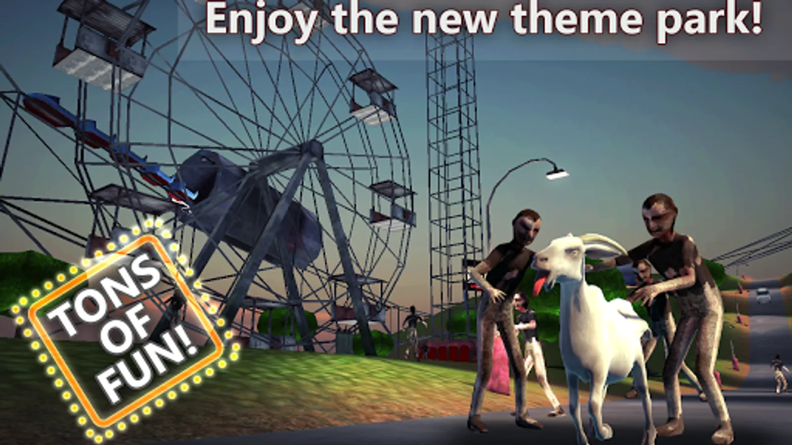 Ram your goat into zombies! Demolish cars. Ride on roller coaster. Explode bombs. Attach your tongue to anything for increased fun factor!