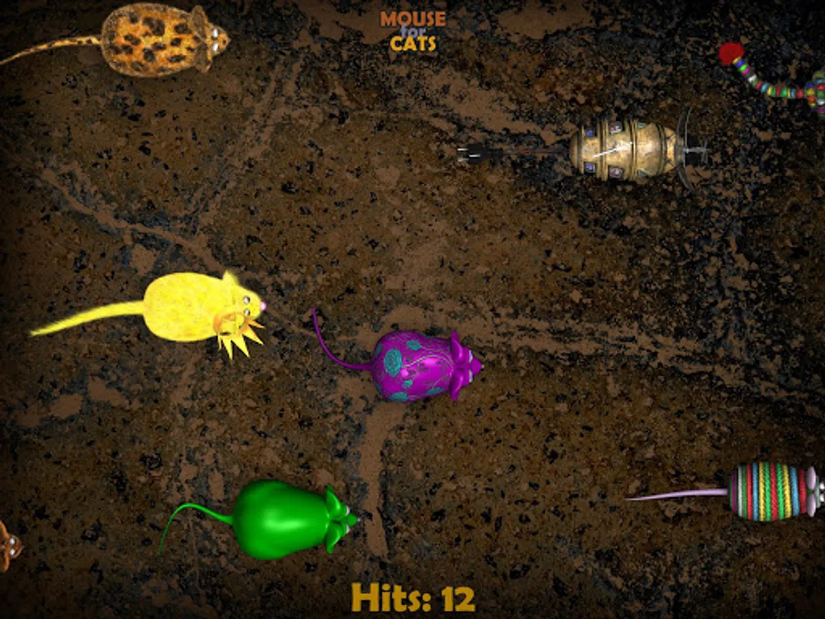 As the rubber toy is not real mouse in the real world and even does not squeak like the real mouse, mice in this game are toys and they are colored for cats - not for humans, same applies for selected sounds. Everything is massively tested and it is interesting action game for most cats.