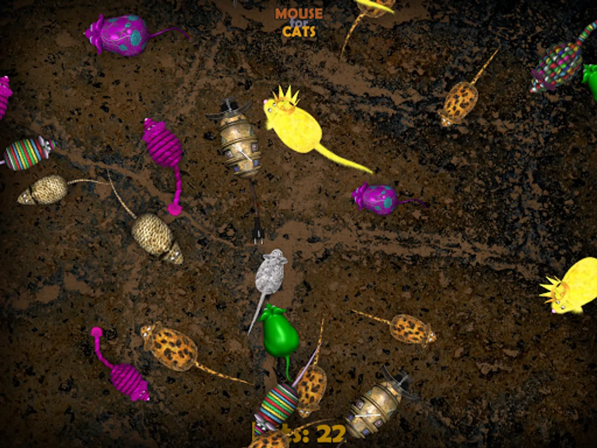 Mice are all different colors with animated shape, irritating tail moves and sounds so your cat pays a serious attention to the game.