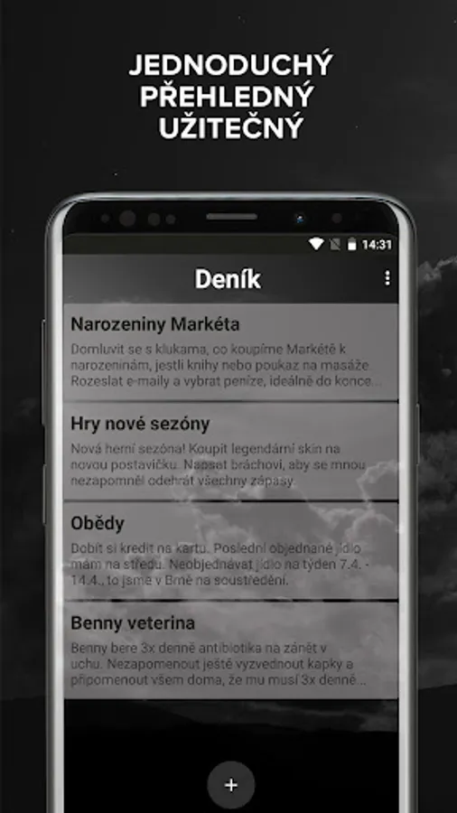 Easy and stylish taking notes and thoughts. Simply and always at hand in a mobile phone. You create a password in the application and your notes remain hidden from prying eyes. However, if you want, you can share individual notes or the entire notebook with your loved ones. All in an elegant black design that you will fall in love with.
