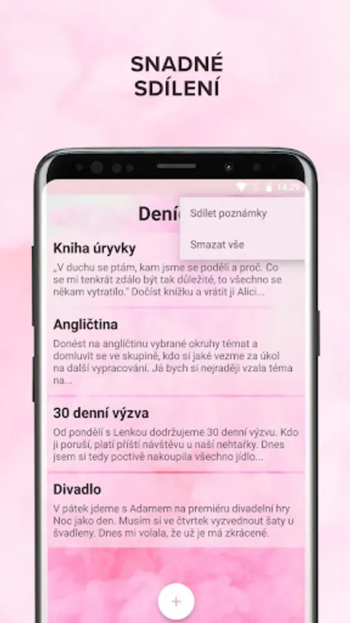 Easy and stylish recording of notes and ideas. Simply and always at hand in your mobile phone. You create a password in the application, leaving your scraps hidden from prying eyes. However, if you prefer, you can share individual notes or your entire notebook with your loved ones. All in a beautiful pink design that you will love.