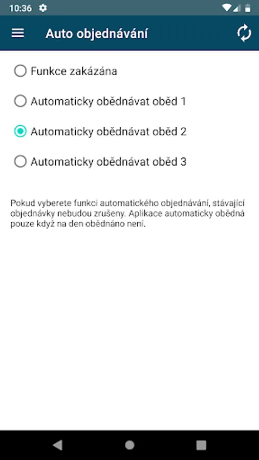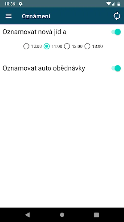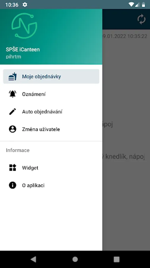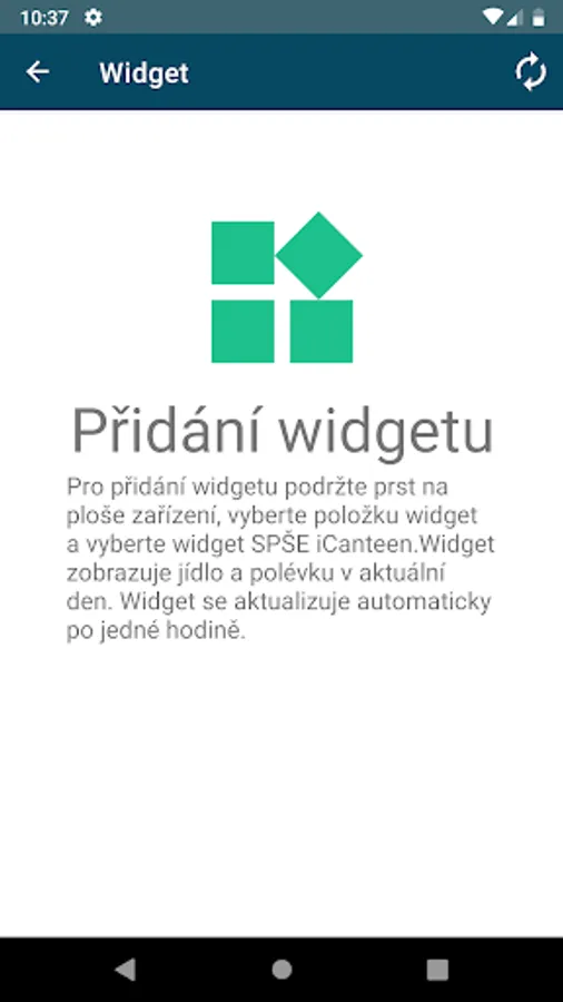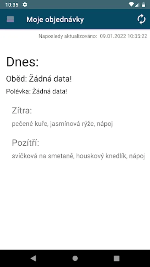The update of the retrieval of food data from the canteen is performed automatically every hour or immediately manually - after clicking on the update icon on the main page.