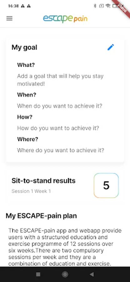 The ESCAPE-pain app is innovative and visually engaging, helping to keep you motivated and tracking your progress and exercise completion. Feel empowered and in control of your recovery.