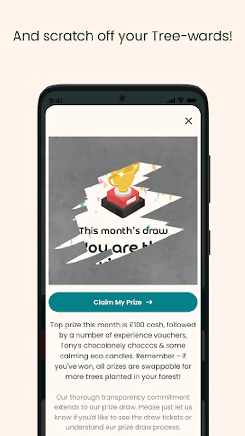 Furthr is here to help you make a real difference for our planet, whilst having some fun on the way! You'll plant protected trees, you'll fast-track renewable energy, you'll offset your unavoidable emissions and you'll learn to live greener in easy, meaningful ways. To keep it fun, you'll also have the chance to win Furthr Treewards on your digital scratchcard: eco goodies, planet-positive experiences, cash prizes & much more - with each Tree-ward swappable in full for more trees planted!