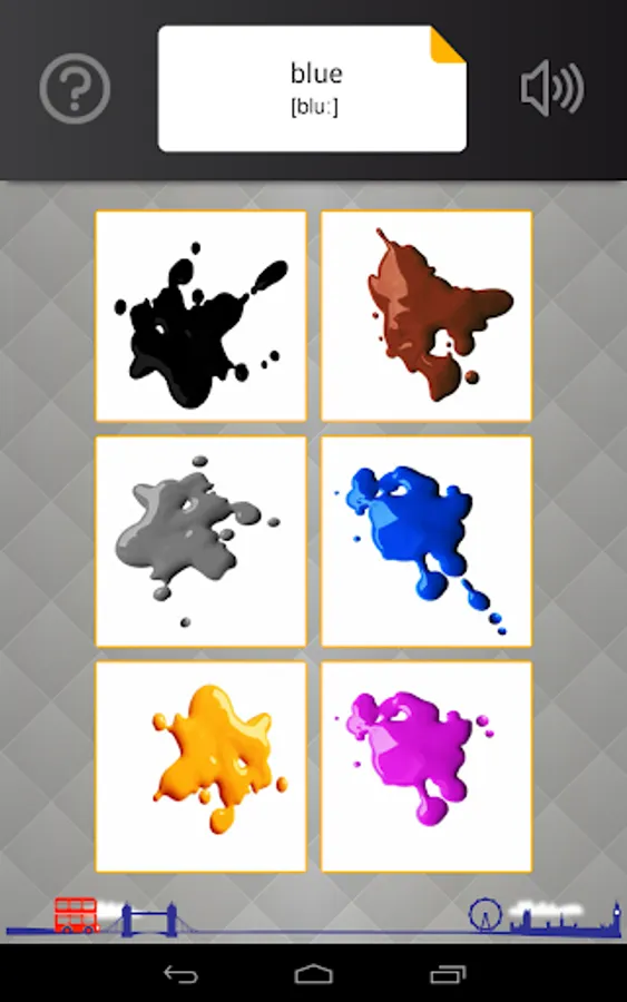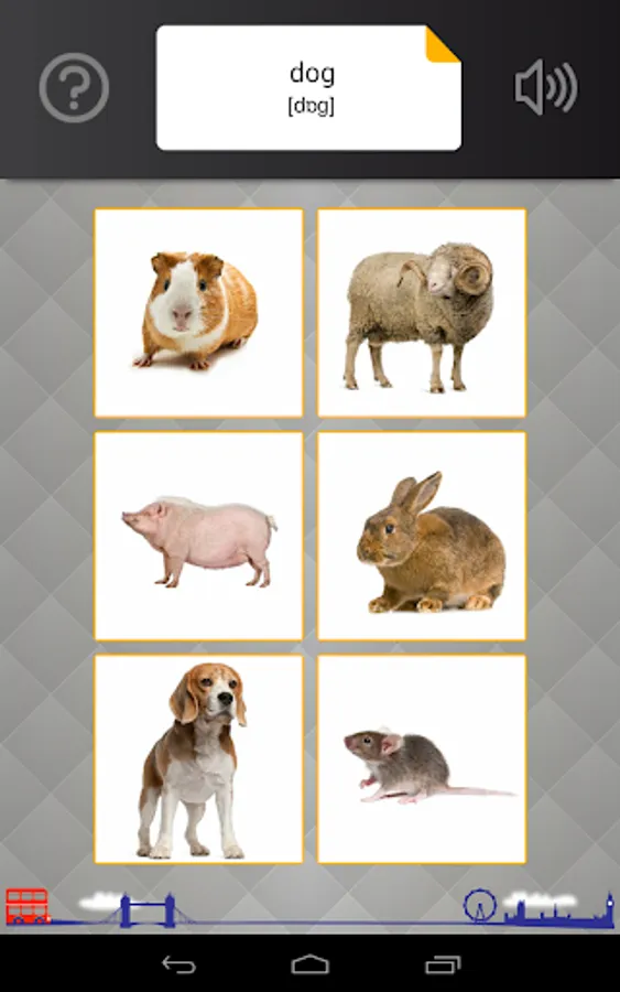 If you select the correct image for a given word, then continue in education. If you guess wrong the very word, then you can re-introduced into teaching. When you do not know and will tell Czech question mark. Each phrase is spoken by native speakers in English and Czech and during teaching English text is displayed. Children in fact may not even know how to read, because the entire operation is only through pictures depicting the word.