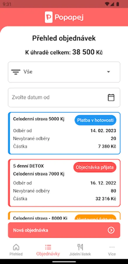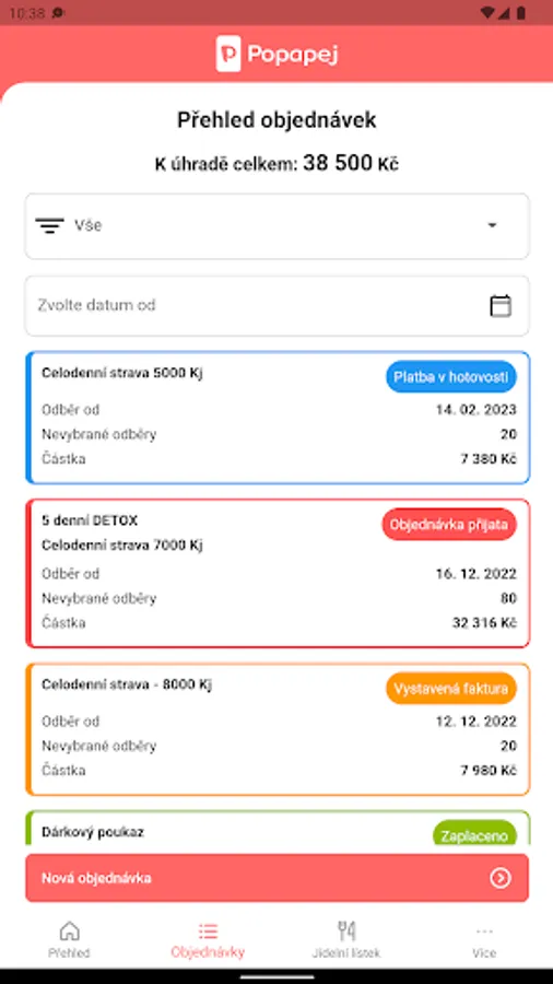 V aplikaci najdete souhrn všech svých objednávek. Pokud jste doposud žádnou neprovedli, krabičky si snadno objednáte i z mobilního telefonu.