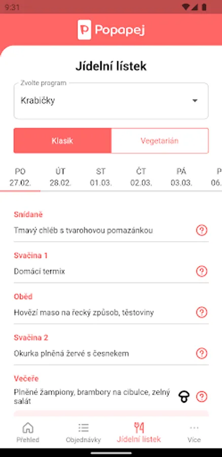Nastavovat si odběr krabiček a jejich počet na konkrétní dny.