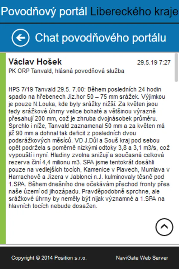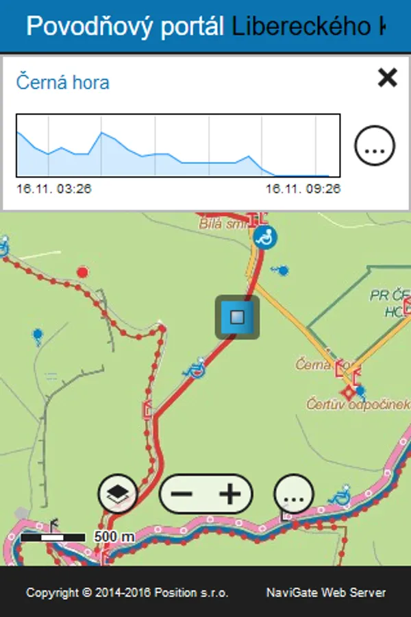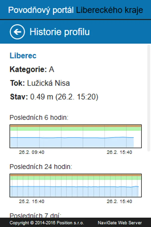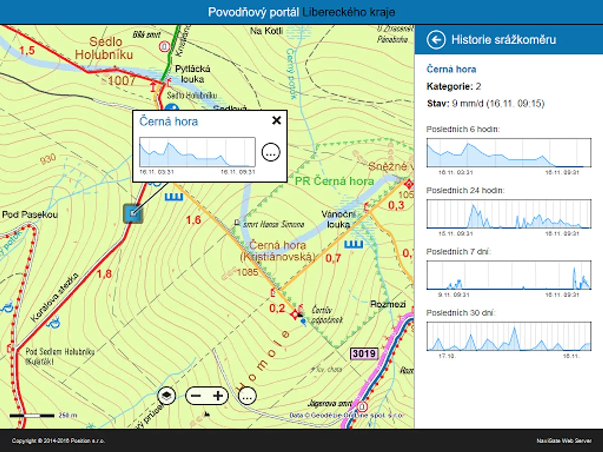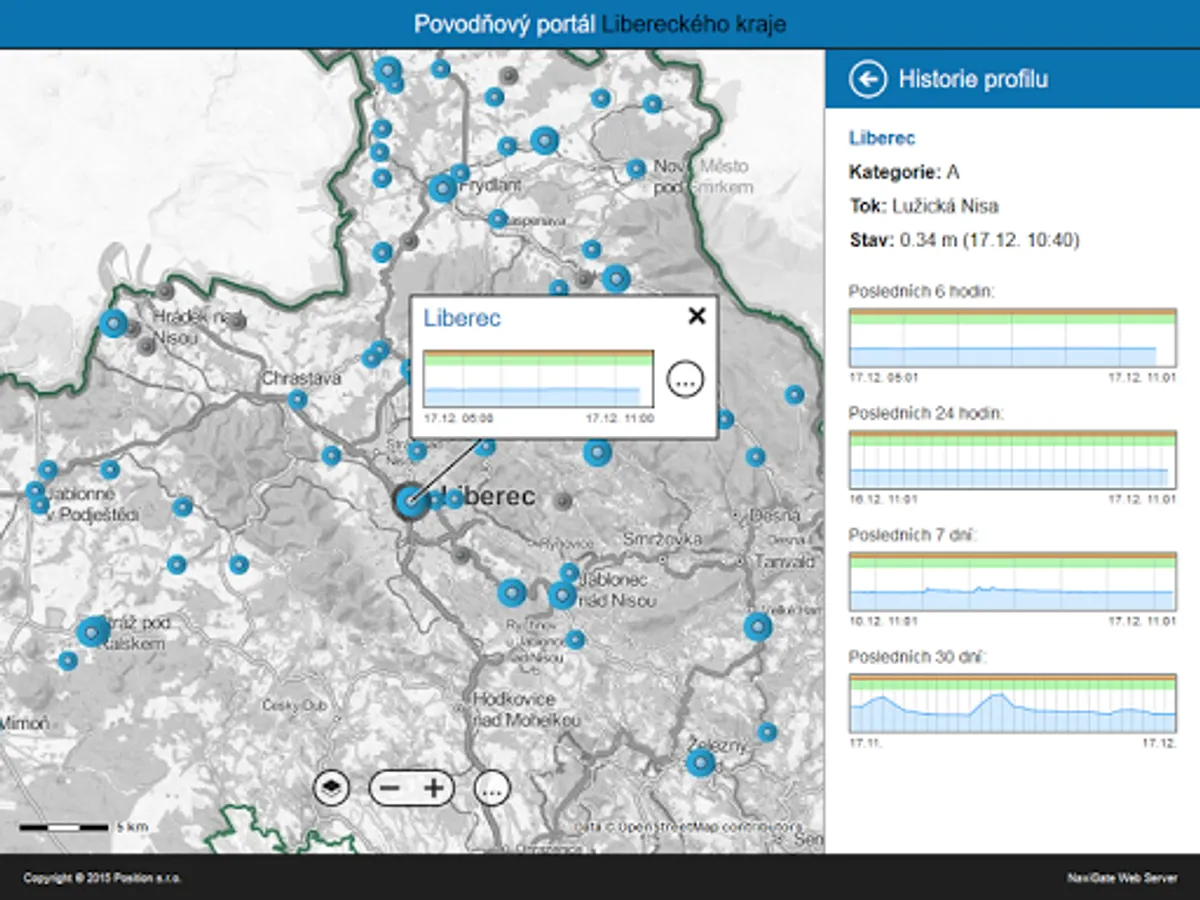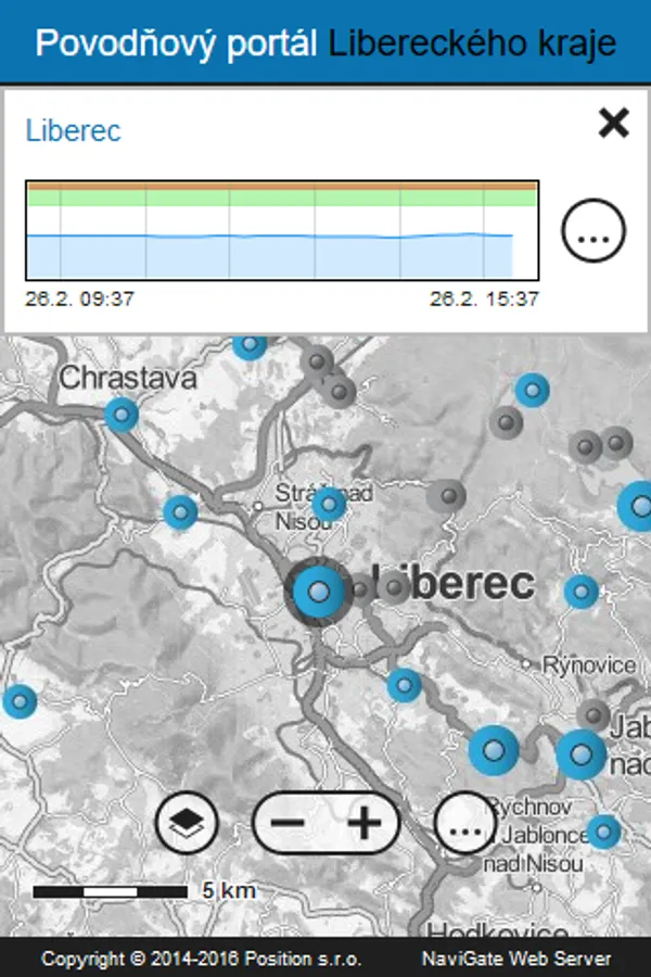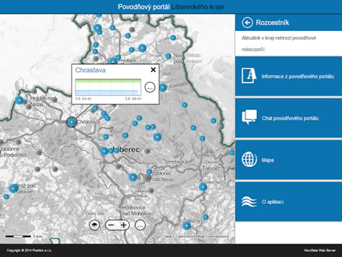 Liberec region, department of Environment and Agriculture, prepared this mobile application to help flood protection in the region. The application provides information on current water levels in rivers and current clashes in the district. It contains data from the watchers profile category A, B and C, and data from rain gauges categories 1 and 2. Shows the history of water levels and precipitation in the form of graphs.