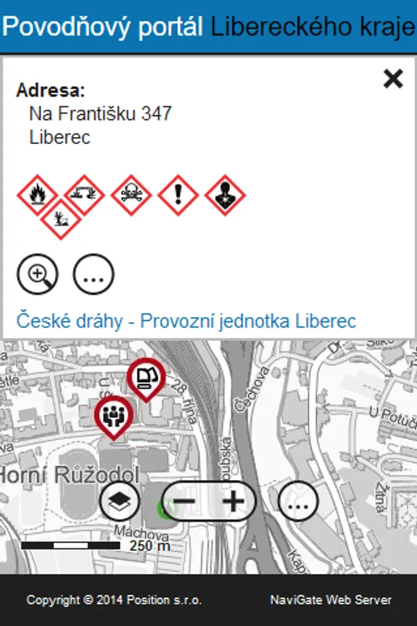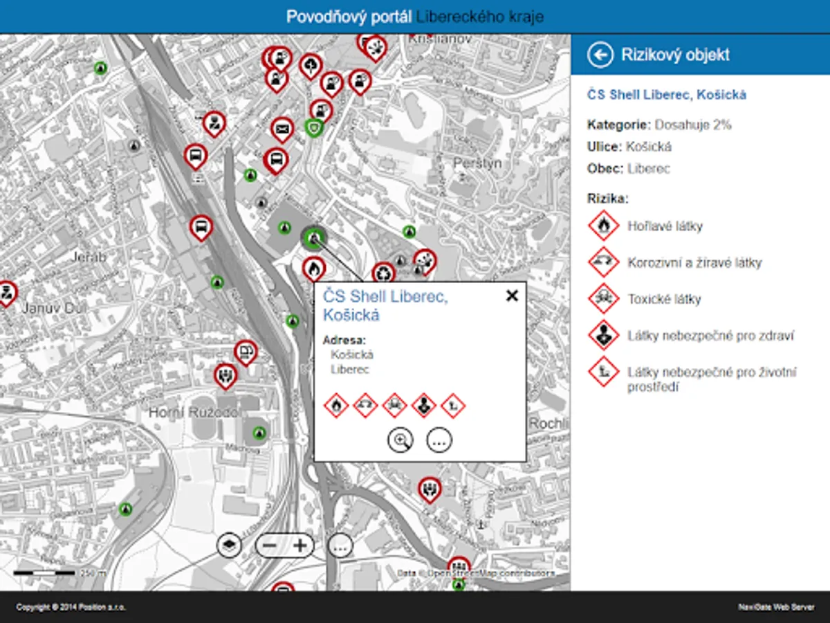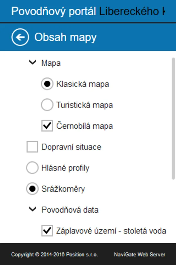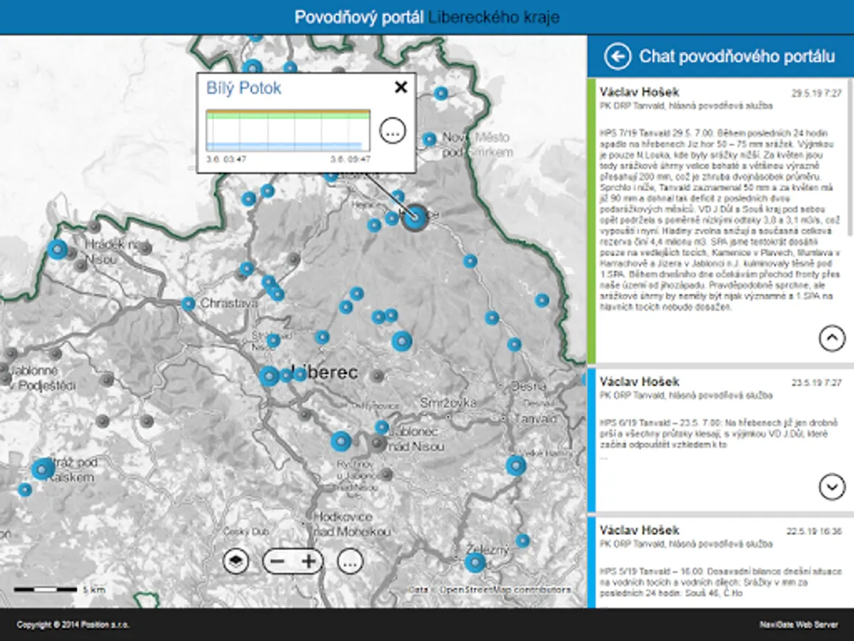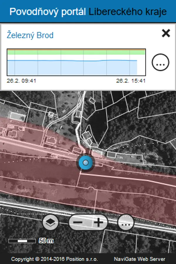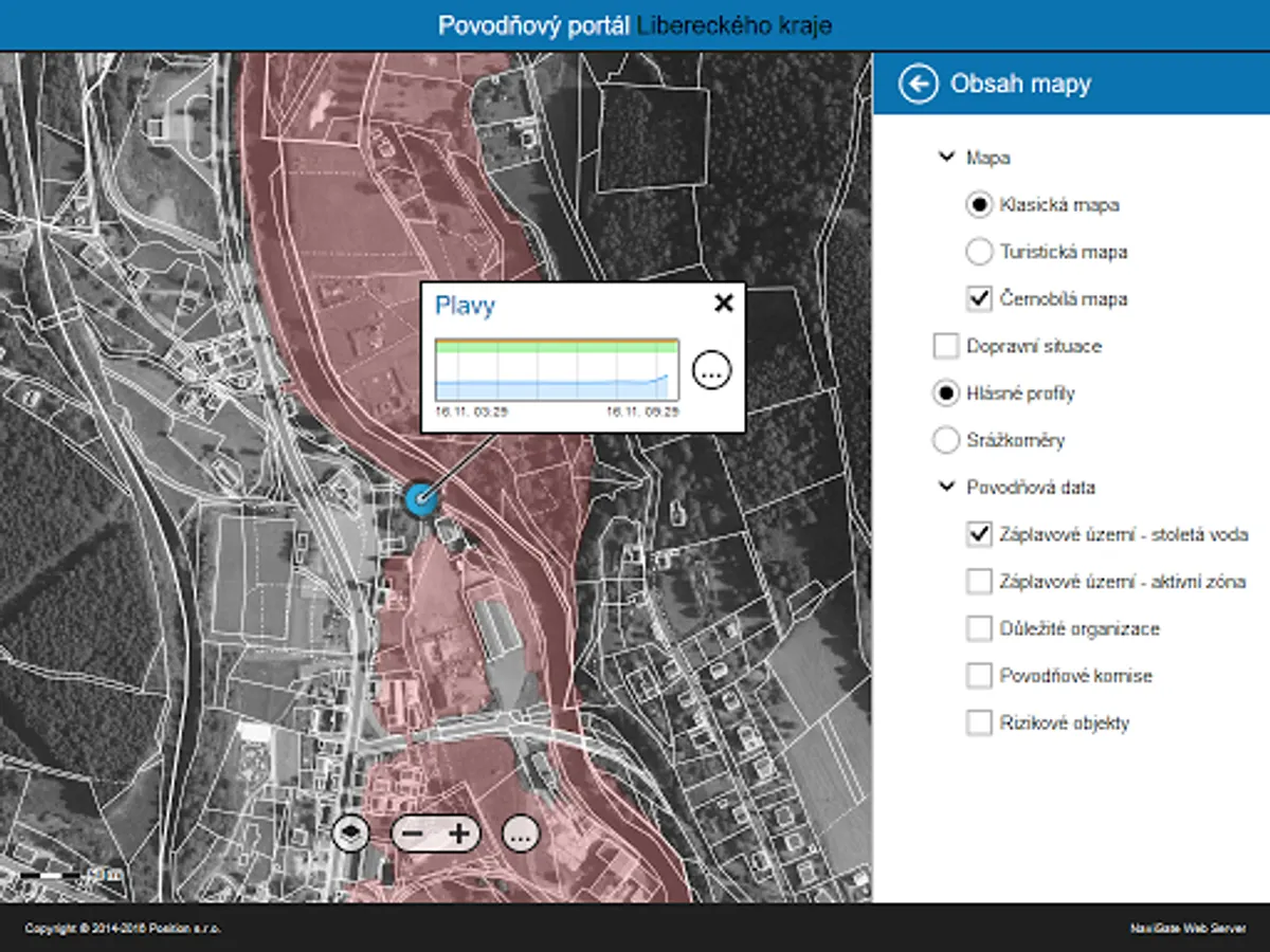 - display additional information layers of the Geoportal Liberec Region (floodplains, flood commissions, risk objects, etc.).