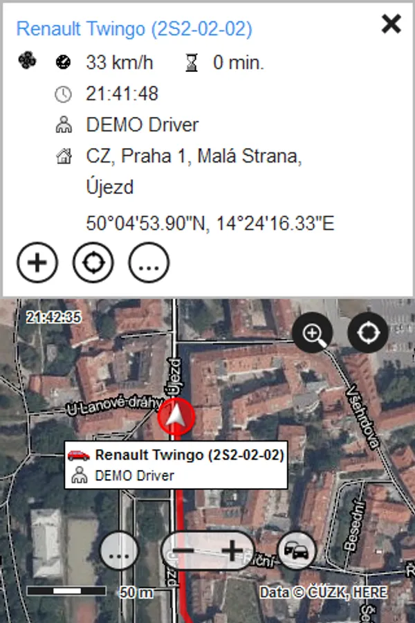 The application is available to all customers Position Tracking Service (http://sledovani.position.cz) by entering their credentials. Other users can use the application mode of test access to demo vehicles.