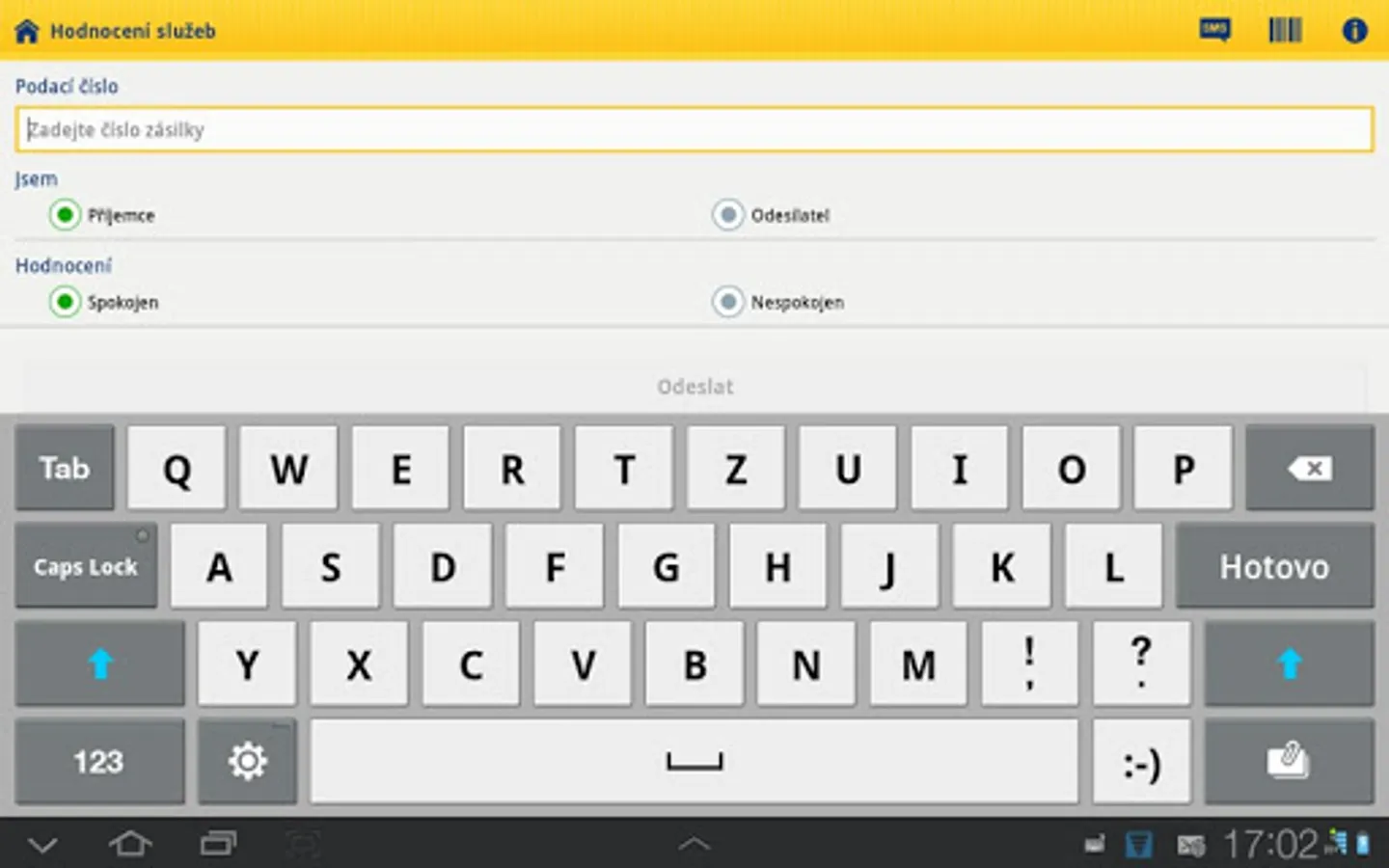 The shipment loads itself into the mobile app based on the shipment contact you entered.