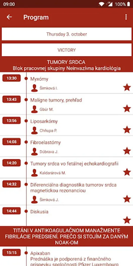 Professional program XXIV. Congress of the Slovak Society of Cardiology in Bratislava. The program is structured according to the time schedule, the individual halls and the lecturers / chairmen that can be found. You can create your own program using the "Favorites" tab.