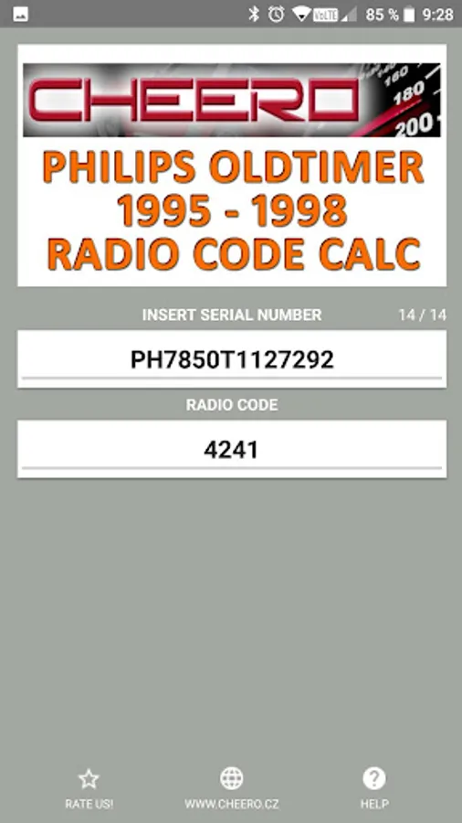 Calc CODE for radio PHILIPS OLDTIMER 1995 - 1999.
