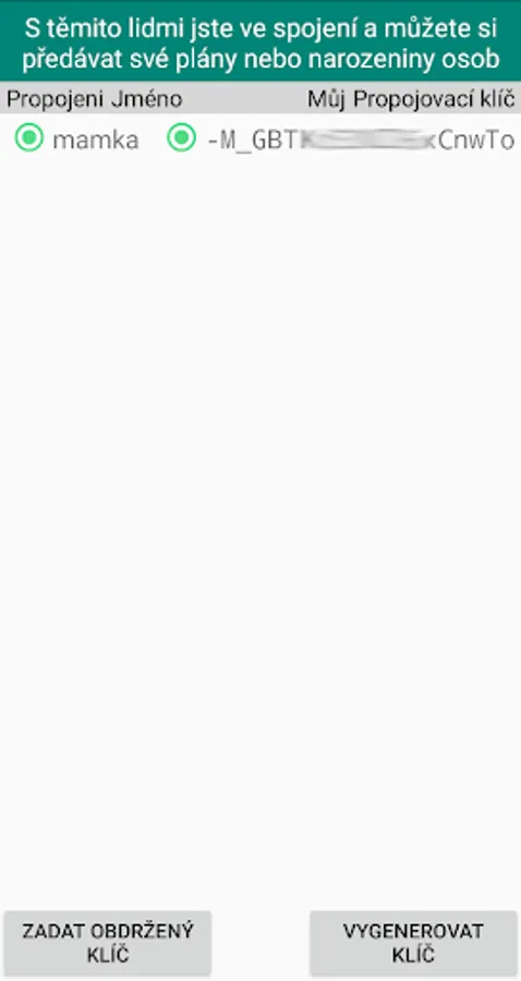 After logging in to the Google Firebase online database, you will also be able to forward selected people's birthdays and joint plans to another person, to whom you will connect using a unique number.