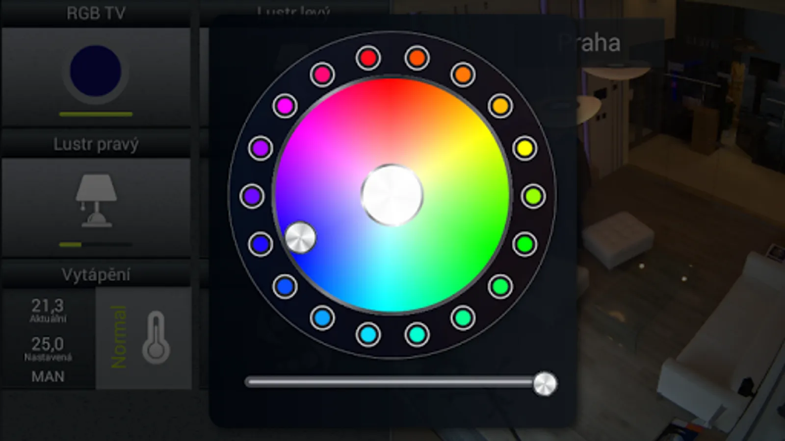 - RGB TV – short presses of the icon are used to switch the RGB LED strip behind the TV, RGB icon also includes the option of a long press, which brings up the dialog window for setting the color of the RGB LED strip