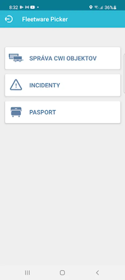 The FleetwarePicker modular application contains several functional units, the availability of which is controlled by the rights of the FleetwareWeb system