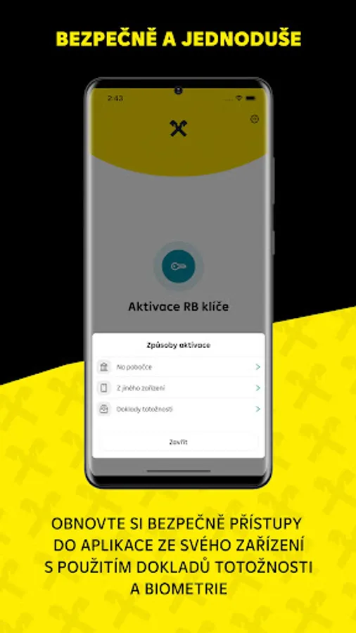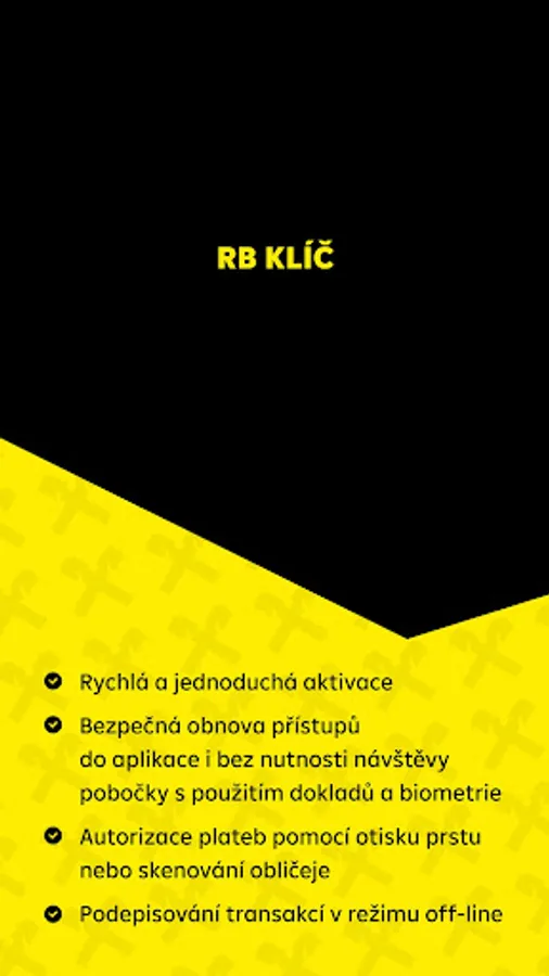 The RB key is an application from Raiffeisenbank that allows you to log in securely and conveniently to internet banking or make it easier for you to confirm the instructions you want to carry out in internet banking. In addition, the RB key allows you to restore access to Raiffeisenbank applications using identity documents and biometrics without visiting a branch.