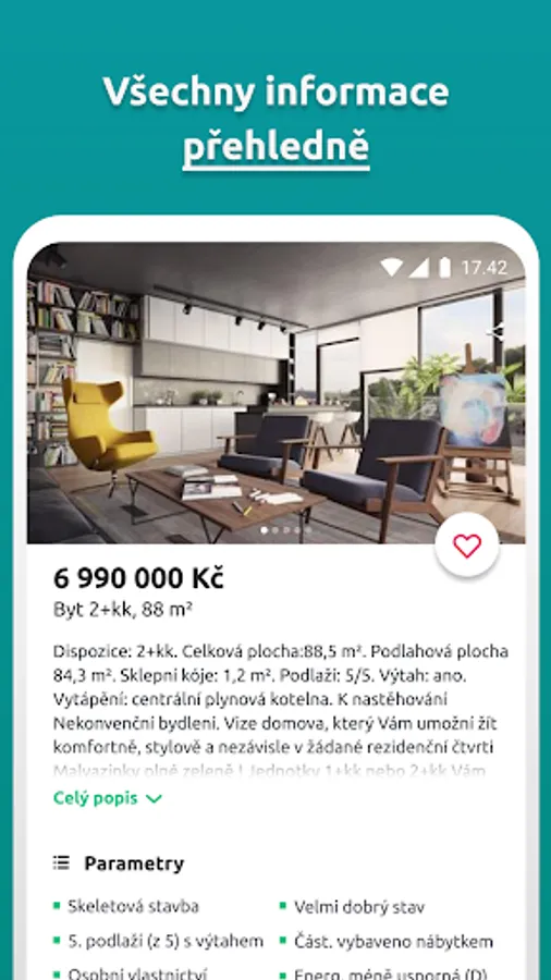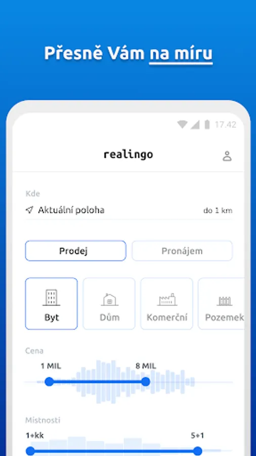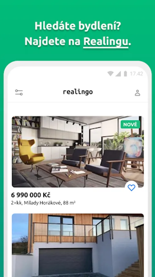 All realities in one place. Realingo displays advertisements from all major Czech real estate servers (real estate idnes, hyperreality, Czech real estate, bazoš, etc.) in one application. Sales and rentals, apartments, houses, land, garages, cottages and cottages. Set your criteria and choose from more than 120,000 properties available in the Czech Republic. Most offers of apartments and houses in Prague, Brno, Ostrava, but also in all other cities. In addition to real estate for sale, there are also auctions and home projects from developers. Rentals also include roommates and subletting apartments.