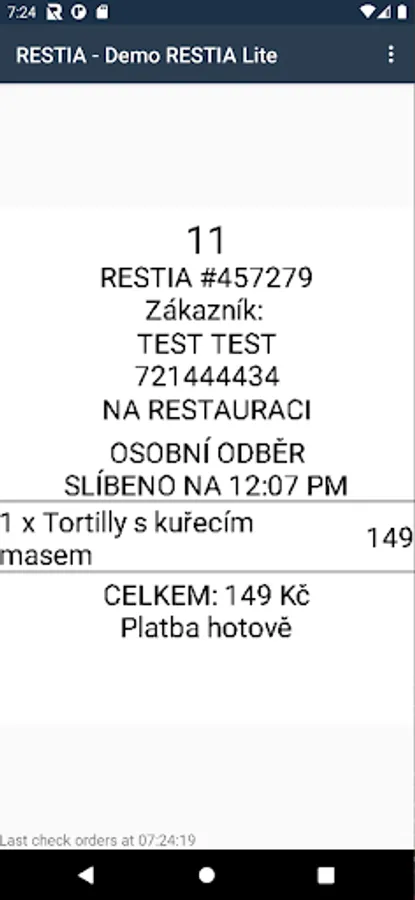The application serves restaurants to receive orders from the RESTIA system and to view the history of orders with the option of printing.