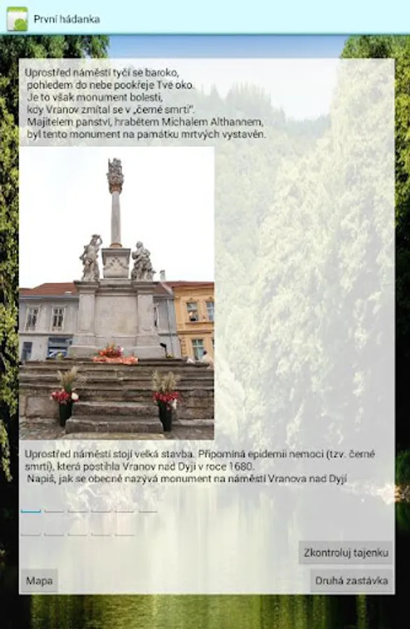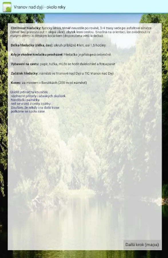 Walks in an interesting area around Vranov Thaya, NP Podyjí and Petrified dam so you can diversify. "Viewfinder". It is a game for the whole family when you are familiar with the sights along the route and filling in crossword that relate to that quest. The result is an overall puzzle.